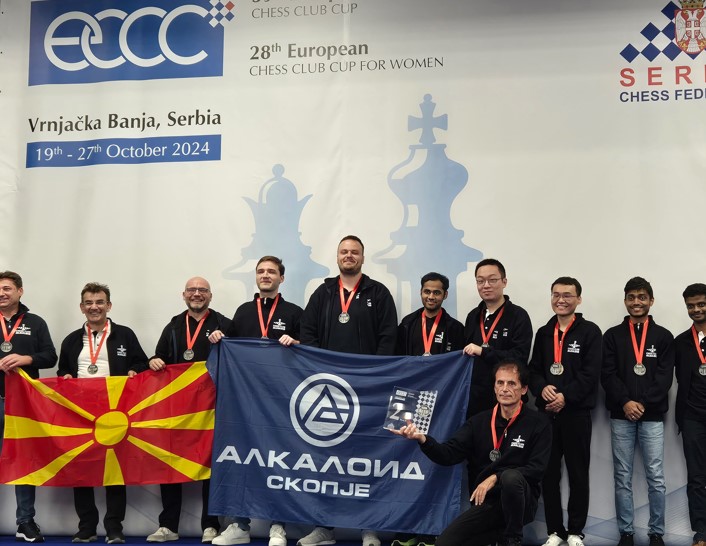 - српските велемајстори како репрезентативци на Србија ја освоија европската шампионска титула во 2023 г., а Inđić следната година стана европски шампион во поединечна конкуренција. За Алкалоид настапуваа и на екипните државни првенства во 2021 (Inđić), односно во 2023 (Ivić) година. Првпат за алкалоидовата екипа на ова најсилно европско клупско натпреварување ќе настапат Puranik и Лазов, објаснува капитенот на тимот, велемајсторот Влатко Богдановски.