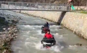 Двајца моторџии, по природа очигледно авантуристи, изгледа буквално го сфатиле зборот „теренски“ во имињата на нивните возила — тие со четирицикли влегоа и возеа во самото корито на реката Пена кај тетовското излетничко место Бањиче. На снимката што самите ја објавиле, се гледаат двајцата модерни каубои, чиишто превозни средства се современи, но немаат многу други допирни точку со новото време, како со немалку мака, но и со нескриена гордост, возат стотина метри по камењата, додека трет ги снима за социјалните мрежи.