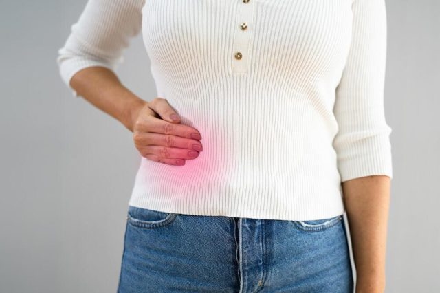 „Други симптоми што можат да укажуваат на овој здравствен проблем вклучуваат болка во горната десна страна на стомакот, замор, слабост и ненадејно губење на тежината.“